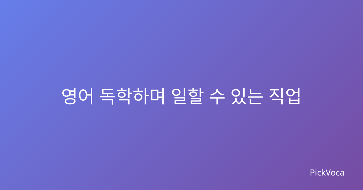 영어 독학하며 일할 수 있는 직업 추천 2026