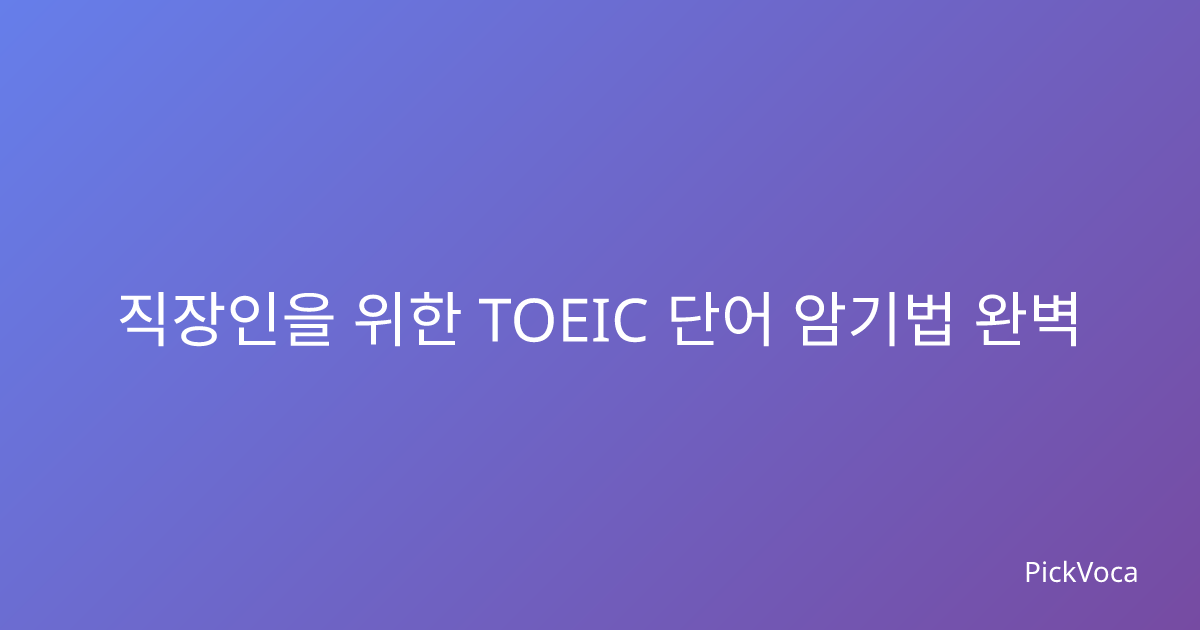 직장인을 위한 TOEIC 단어 암기법 완벽 가이드