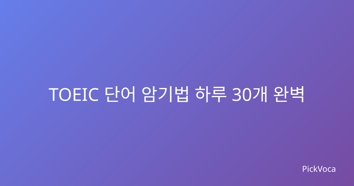 TOEIC 단어 암기법 하루 30개 완벽 마스터 TOEIC 시험을 앞두고 단어 암기 때문에 스트레스받고 계신가요? 막막한 양의 어휘를 어떻게 효율적으로 외워야 할지 고민되시죠? 많은 수험생들이 단어 암기를 가장 어려
