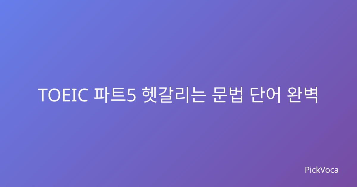 TOEIC 파트5에서 자주 틀리는 헷갈리는 문법 단어들을 완벽 정리. 형용사/부사 구분, 전치사/접속사 구분, 동사 형태 선택 등 핵심 문법 포인트와 실전 팁까지